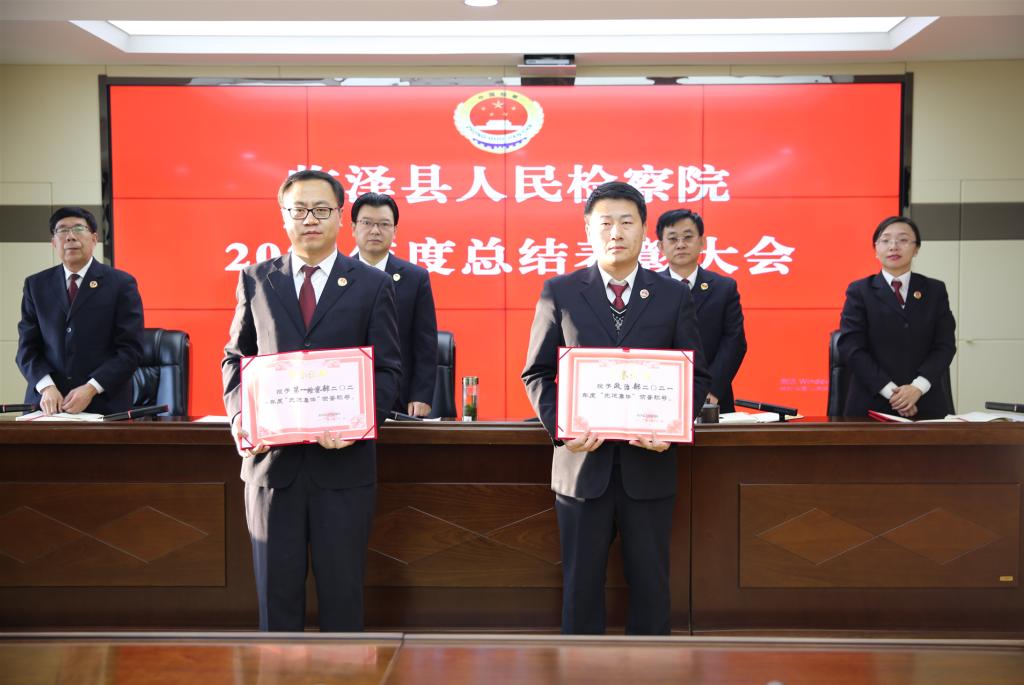 会上,党组成员、副检察长张永银总结了2021年度全院检察工作。党组成员、副检察长徐品艺宣读了表彰2021年度先进集体、先进工作者和优秀书记员的决定。